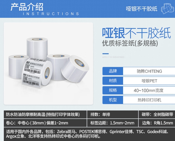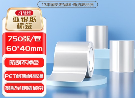 驰腾/chiteng 60*40*750 亚银标签纸标签打印纸/条码纸 750张/卷